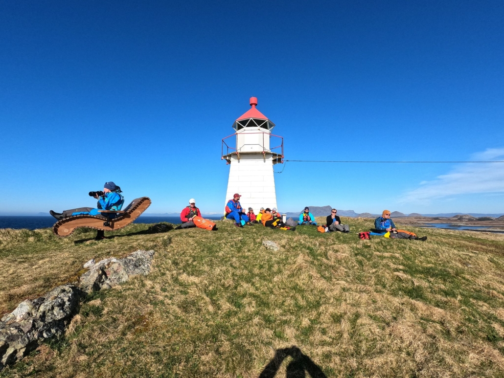 Turen denne dagen gikk ut til Sandøy, der vi gikk i land og spaserte opp til fyret for å ta en pause og få i oss litt mat. Stemningen var god og været var upåklagelig. Oppe ved fyret fikk vi oversikt over landskapet og se på litt dyreliv med ørn og oter nede på skjærene.