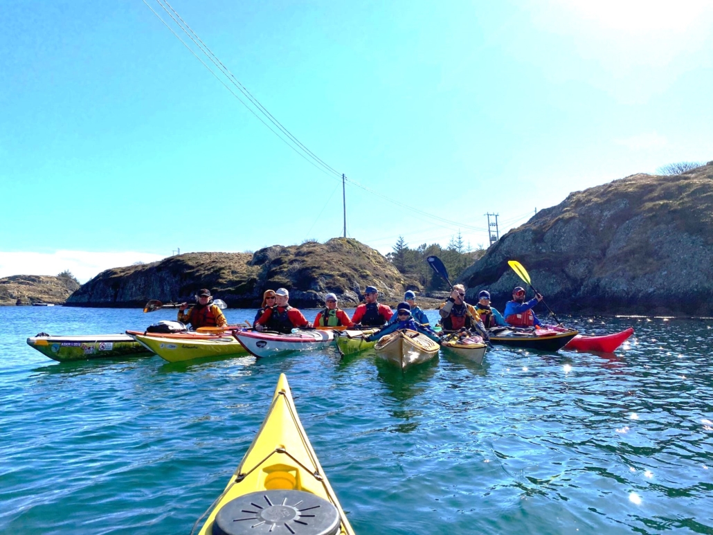Helgen startet med fantastisk flott vårvær og vi startet turen ut til Bulandet lørdag morgen. Skulle ta fergen fra Askvoll klokken 11:45, men da den hadde fått motor trøbbel ble det litt venting på fergekaien i Askvoll. I så flott vær og en så kjekk gjeng var dette ikke noe problem. Klokken 13:30 kom det ny ferge og vi kom oss over til Værlandet. Da vi kom frem til Liv og Lyst ble vi tatt i mot av Marit, Ina og Aksel Som hadde reist ut dagen før. Etter å ha pakket ut litt og gjort klar kajakkene var klokken blitt 16 og vi var klare til å komme oss ut på sjøen og padle mellom øyer, holmer og skjær ute i fantastiske Bulandet.