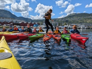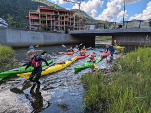 Vi padlar ulike typar kajakk og SUP på Førdefjorden og Jølstra/Løken, og tek lunsjpause ca. klokka 12.